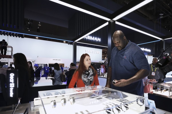 샤킬 오닐이 5일(현지시간) 미국 라스베이거스에서 개막한 'CES 2017'에서 삼성전자 전시관을 방문해 다양한 전시 제품을 둘러보고 체험을 했다.