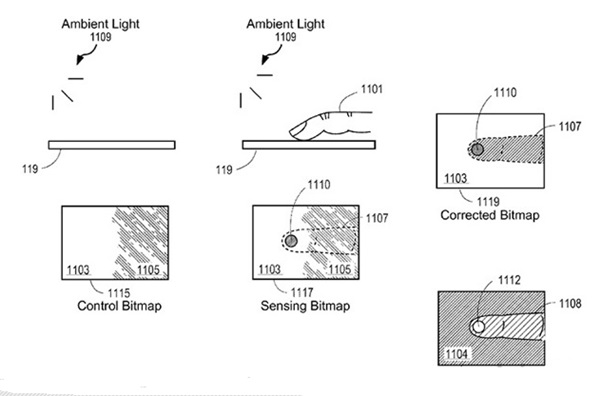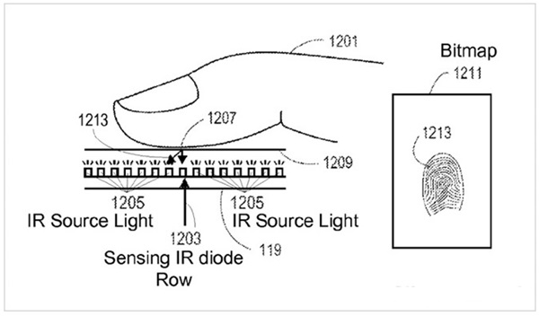이날 부여된 애플특허는 애플이 인수한 럭스뷰(Luxvue) 기술을 적용, 사용자의 지문을 전용 센서없이 읽을 수 있는 디스플레이기술을 통합시키려 한다는 것을 보여준다.