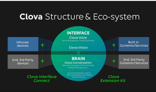 클로바는 ▲인간의 오감에 해당하는 ‘클로바 인터페이스(Clova Interface)’ ▲두뇌에 해당하는 ‘클로바 브레인(Clova Brain)’을 핵심으로 ▲디바이스 및 애플리케이션을 연결하는 ‘클로바 인터페이스 커넥트(Clova Interface Connect)’ ▲콘텐츠/서비스 연결로 ‘클로바 브레인’의 기능을 확장하기 위한 ‘클로바 익스텐션 키트(Clova Extension kit)’ 등으로 이뤄진다.