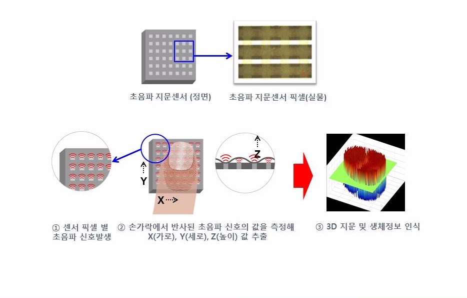세라믹 초음파 지문인식센서는 초음파를 이용해 지문의 깊이와 땀구멍, 뼈의 생김새, 혈류의 움직임 등 생체정보를 조합하고 식별하는 방식으로 기존 상용화된 지문인식센서의 단점인 위·변조를 원천 차단하는 것이 특징이다.