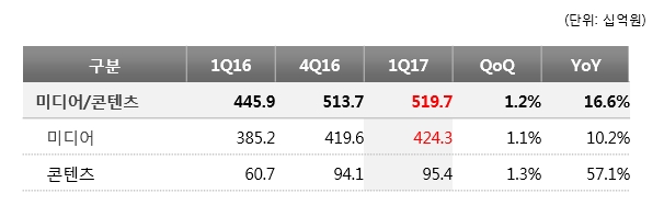 올 1분기 KT 실적은 미디어∙콘텐츠사업이 이끌었다.