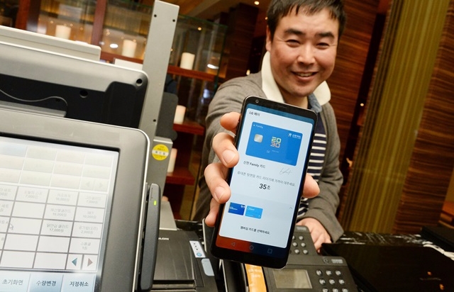 LG페이는 모바일 기기에서 마그네틱 신호를 발생시켜 이를 신용카드 단말기에 대면 결제되는 방식으로 높은 보안성이 장점이다.