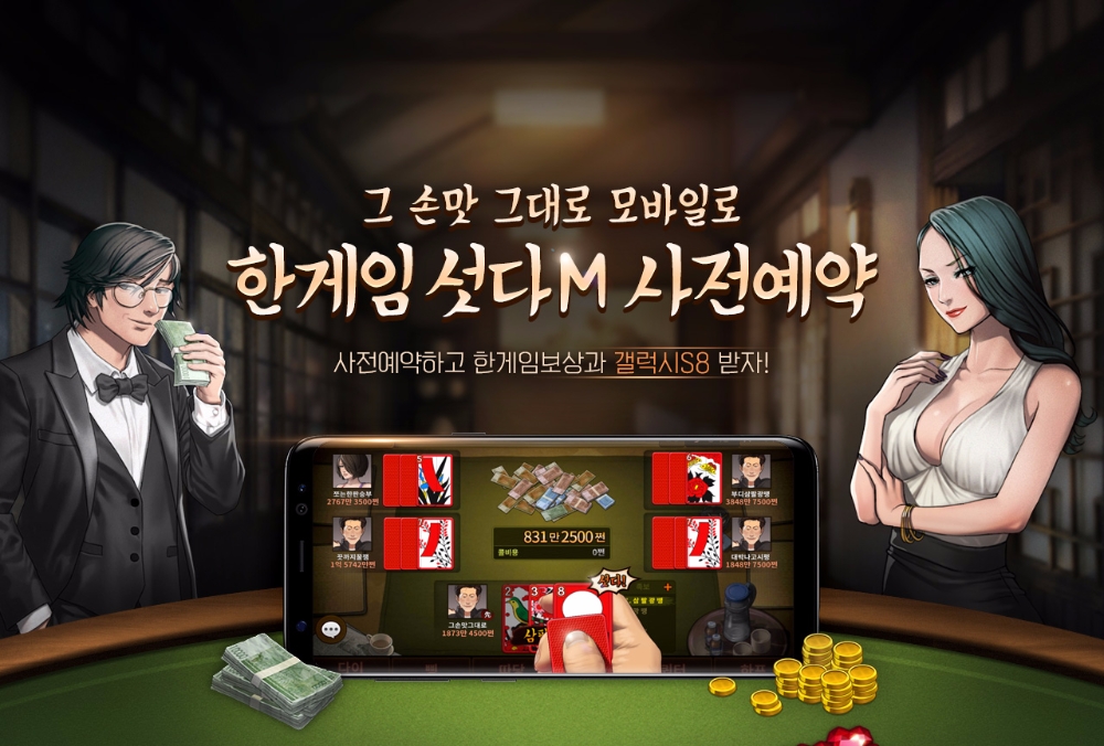 ‘한게임 섯다M’ 사전예약은 25일까지 만 18세 이상 이용자를 대상으로 진행된다. 사전예약참여자 전원에게는 게임머니 5억쩐과 보석 7개를 제공한다. SNS로 ‘한게임 섯다M 사전예약’ 이벤트를 공유한 이용자 중 추첨을 통해 삼성 갤럭시S8(1명), 신세계 상품권 10만원권(10명), 헛개수 기프티콘(100명)을 선물한다.