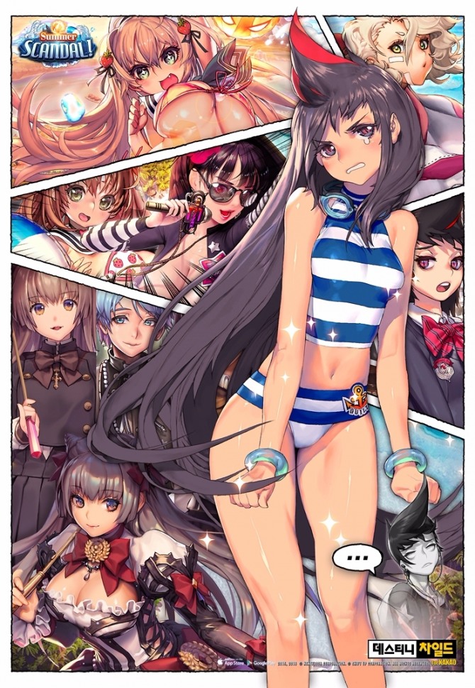 이미지 확대보기여름 시즌을 맞아 레이드 콘텐츠 ‘비치 밤! 섬머 스캔들(Beach Bomb! Summer Scandal)’을 선보인다. ‘비치 밤! 섬머 스캔들’은 데스티니 차일드의 정규 레이드 콘텐츠인 ‘라그나 브레이크’의 네 번째 시즌이다. 마계에서 개최한 여름 이벤트에 참가한 주인공 일행이 신비의 섬 ‘리비도’에서 겪는 모험 이야기를 담고 있다.