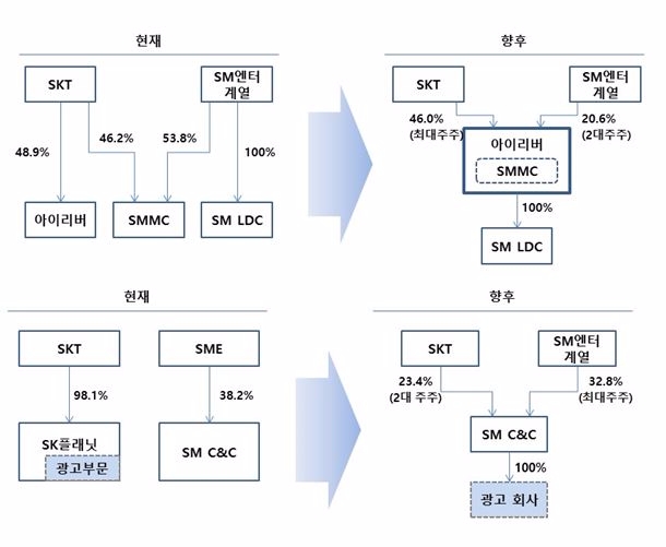 이번 투자로 SKT와 SM엔터는 각각 SM C&C와 아이리버의 2대주주가 된다. 또 SM C&C는 SK플래닛의 광고사업부문을 인수하게 됐다.
