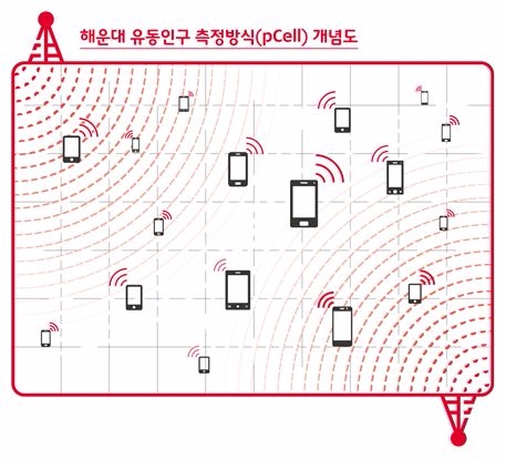 이미지 확대보기이번에 활용된 산정방법은 해운대 주변 이동통신 기지국 셀을 활용해, 해운대 해수욕장을 50m X 50m 기준으로 격자형으로 나눠, 각각의 공간에 미치는 이동통신 기지국 신호세기를 기준으로 측정하게 된다. 해당 지역의 전파 범위를 잘게 나눠 해운대 해수욕장 경계 내에 있는 핸드폰 숫자를 측정하는 방법이다.