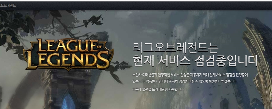 리그오브레전드는 20일 게임 서버의 안정화를 위해 롤점검을 진행중이다./리그오브레전드
