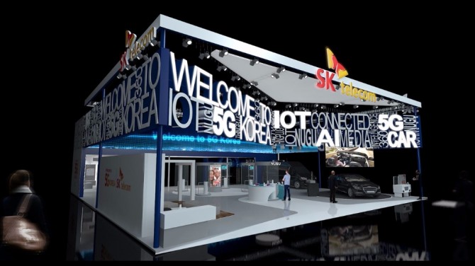 SK텔레콤은 이번 전시에서 16년부터 에릭슨‧인텔과 공동 개발한 5G 이동형 인프라 차량을 처음 선보인다. 전시관에선 장비 소개와 함께 8K 360 VR(가상현실) 영상을 초당10MB 속도로 실시간 전송하는 시연 영상을 보여준다.