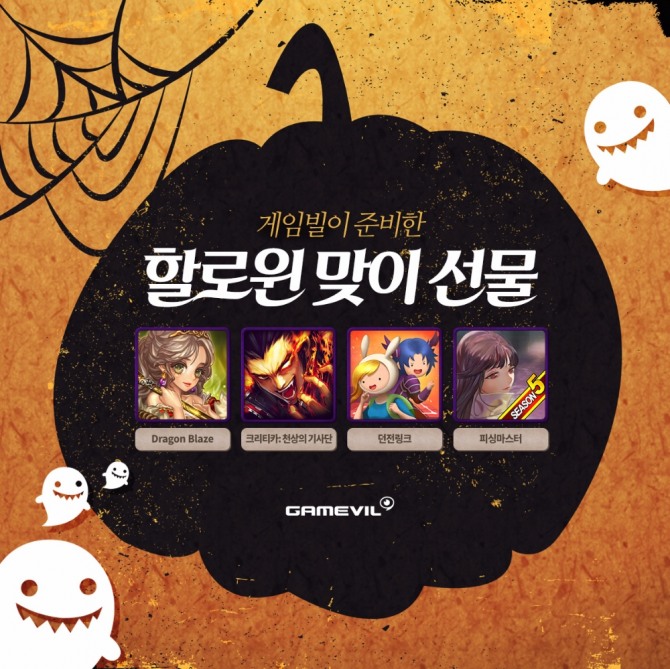 게임빌은 ‘드래곤 블레이즈’, ‘크리티카: 천상의 기사단’, ‘던전링크’, ‘피싱마스터’ 등 4종 게임에서 핼러윈 기념 이벤트를 실시한다.