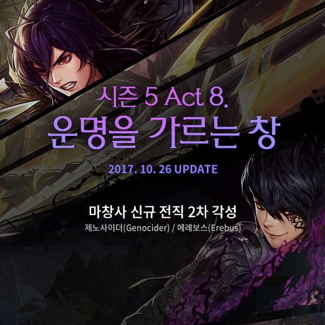 ‘다크 랜서’의 2차 각성 캐릭터 ‘에레보스’는 어둠의 기운으로 공간을 잠식하는 콘셉트로, 영역 위에서 지속적으로 잠식을 유발하는 ‘심연에’, ‘멸광천투’ 등의 스킬로 공격을 가하는 것이 특징이다.