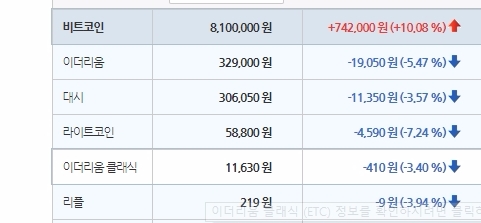 같은날 10시42분에는 790만원으로 잠시 내려가기도 하며 800만원 선을 기준으로 미세한 변동폭을 보이고 있다.