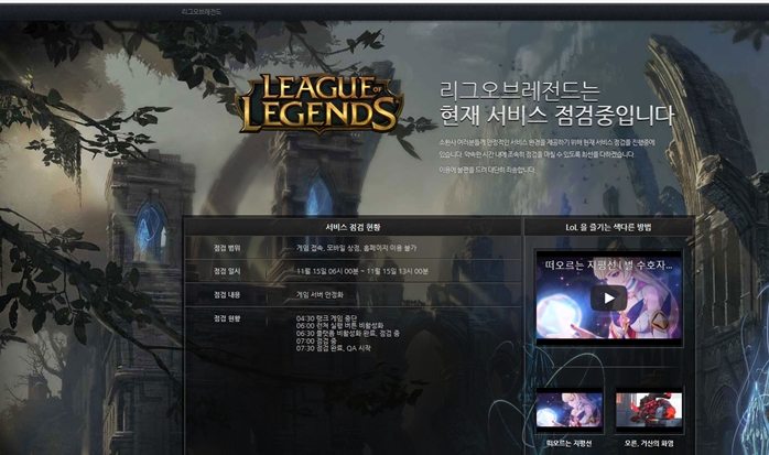 앞서 지난 8일 7.22패치 업데이트에서 룬 시스템이 수정되면서 접속 장애가 발생해 유저들이 큰 불편을 호소, 이번 서버 안정화작업으로 문제점을 해결할지 관심이 집중되고 있다.