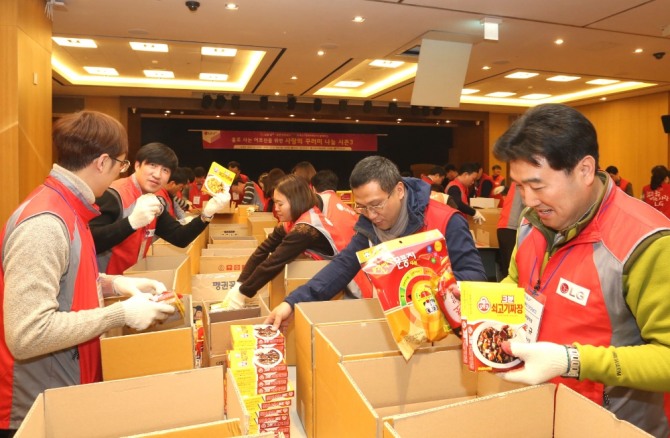 이미지 확대보기LG유플러스, U+동반성장보드, 대·중소기업‧농어업협력재단의 임직원 자원봉사자 70명은 은평어르신돌봄통합지원센터 외 수행기관 8개소를 통해 홀로 사는 어르신 350가정에게 난방용품, 식료품 등 후원물품을 전달한다.
