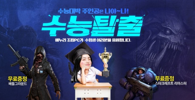 이미지 확대보기이번 이벤트는 에누리 조립PC에서 게임PC를 사고 수험표를 인증하고 이벤트 페이지에 댓글을 달면 응모된다. 50만원 이상 구매 후 응모까지 완료한 선착순 100명에게는 구매 금액에 따라 배틀그라운드(50명) 또는 스타크래프트 리마스터(50명) 게임을 증정한다.