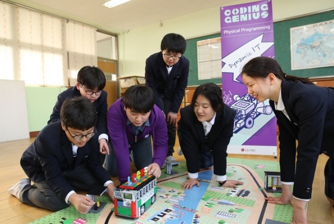 LG CNS는 올해부터 중학생을 대상으로 코딩(Coding)의 기초를 교육하는 프로그램인 ‘코딩 지니어스(Coding Genius)’를 운영하고 있다.