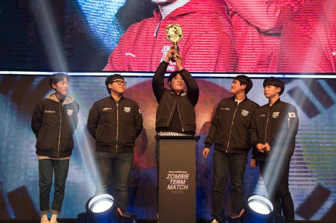 이미지 확대보기지난 16일 진행된 한국 대표팀 선발전에서 우승을 차지해 중국 대표팀 초청전 출전권을 획득한 ‘Sephiroth’팀은 17일 중국 대표팀 ‘PKD’를 상대로 2:0 완승을 거두며 ‘좀비 모드’ 첫 국가 대항전을 한국의 승리로 장식했다.