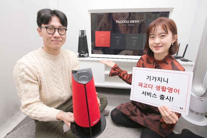 KT의 음성인식 인공지능 기술과 파고다어학원의 축적된 외국어 학습 노하우를 접목한 ‘파고다 생활영어 서비스’는 실전회화 위주의 영어학습을 원하는 대학생, 직장인, 가정주부 등에게 소구할 것으로 전망된다. 실제 파고다어학원에서 수업중인 ‘I can speak’ 과정 중 1~4단계 레벨을 토대로 ▲대화 듣기 ▲문장 따라하기 ▲롤 플레이 ▲유용한 표현의 네 가지로 구성됐다. 향후 영어문장 따라하기 기능, 롤 플레이 이용 시 원어민 발음 대비 일치도를 피드백 해주는 기능도 추가할 예정이다.