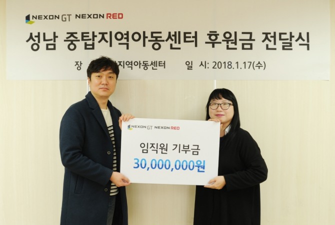 이미지 확대보기기부금은 넥슨지티와 넥슨레드 임직원들이 사내 피트니스와 미용실 등 편의시설을 이용하며 낸 금액을 모은 것이다. 두 회사는 회사가 위치한 성남시 지역 아동들을 직접 후원하고자 지난 2015년 중탑지역아동센터와 사회공헌 협약을 맺었다.