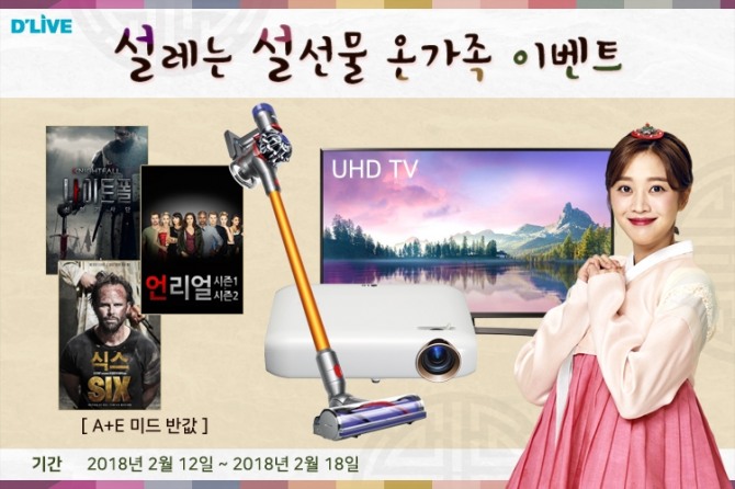 딜라이브는 오는 19일까지 설 연휴를 이용해 미국드라마를 몰아보는 고객들을 위해 글로벌 미디어 기업인 A+E의 인기미드 반값 할인프로모션도 진행한다.