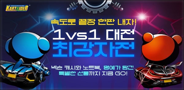 넥슨은 업데이트를 기념해 오는 21일까지 ‘1vs1 대전’에 참여한 유저 중 상위 10명에게 넥슨캐시 등을 제공한다. 최종 등급별로 ‘슈퍼카트키’와 ‘네오 신상 카트 No.2’ 등의 게임 아이템도 지급한다.