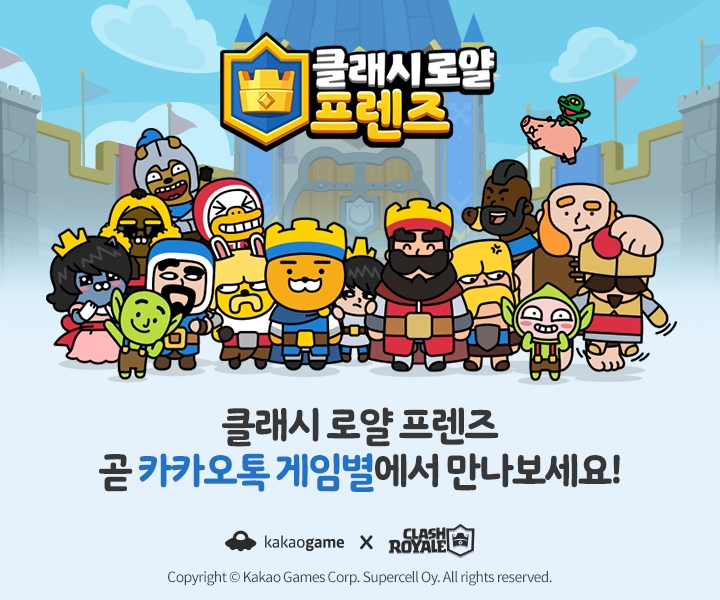 모바일 게임 플레이 채널 ‘카카오톡 게임별’을 통해 서비스될 ‘클래시 로얄 프렌즈’는 ‘클래시 로얄’ 대표 캐릭터 8종이 친근하고 귀여운 모습으로 등장하는 것이 특징이다.