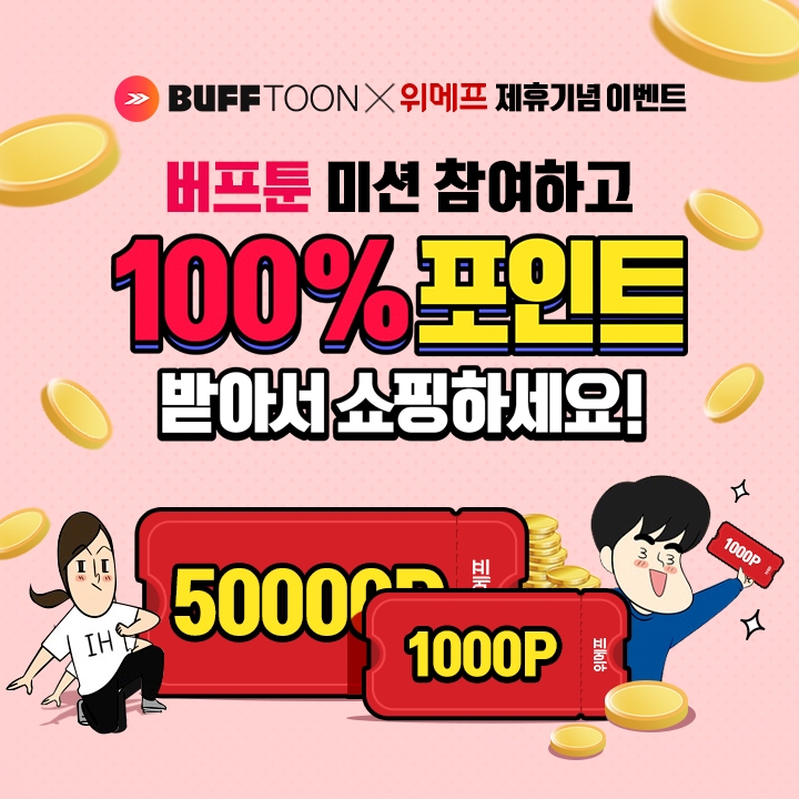 -버프툰 가입, 베스트 웹툰 구독 등 3개 미션을 완료하면 위메프 포인트 제공