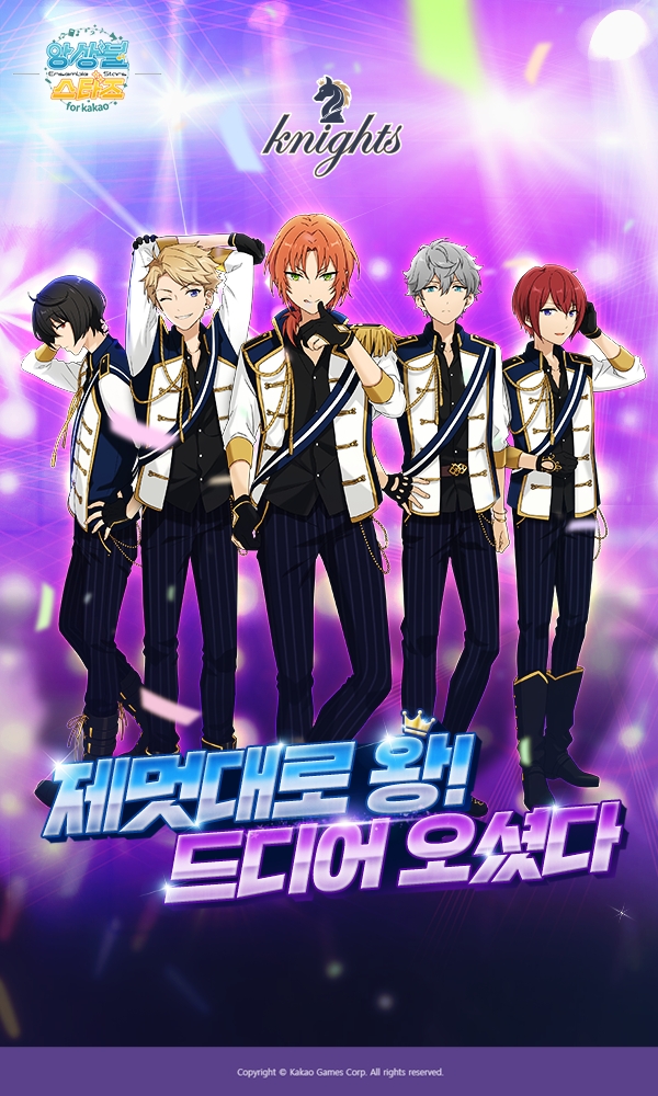 신규 캐릭터 ‘레오’의 등장으로 기존 멤버 ‘츠카사’ ‘아라시’ ‘이즈미’ ‘리츠’가 속한 ‘나이츠’ 유닛이 총 5명의 완전체 유닛으로 탄생, 우아하면서도 화려한 기사도를 선보이며 이용자들의 마음을 사로잡을 예정이다.