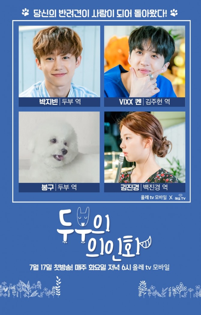 이미지 확대보기‘두부의 의인화’는 iMBC ‘해요TV’와 공동 제작하고, 아이돌 그룹 빅스 켄, 박지빈, 김진경 주연의 로맨스물이다. 인기 스타지만 연애에 서투른 매력남 ‘김주헌’, 귀엽지만 미스터리한 남자 ‘두부’, 그리고 사랑스러운 여주인공 ‘백민경’이 펼치는 8부작 드라마다. 17일부터 매주 화요일 오후 6시, 올레 tv 모바일을 통해 선 공개된다.