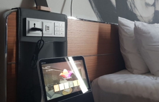 단말기를 통해 객실 조명과 온도를 조절하는 한편 TV 채널 바꾸기도 가능했다. 이를테면 잠을 잘 때 “지니야 굿 나잇”이라는 말 한마디를 하면 조명은 물론 온도까지 수면에 가장 적당한 수준으로 조절된다는 것.