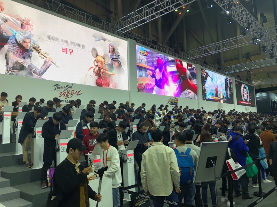 가장 눈에 띈 시연 존은 다음 달 6일 출시될 '블레이드 앤 소울 레볼루션' 시연대였다. 이 게임은 지난 2012년 출시된 온라인 게임 '블레이드 앤 소울'의 IP를 이용해 제작된 것이 특징이다. 원작의 느낌 그대로 모바일에 옮겨 기존 유저들의 반응을 이끈 것으로 보인다.