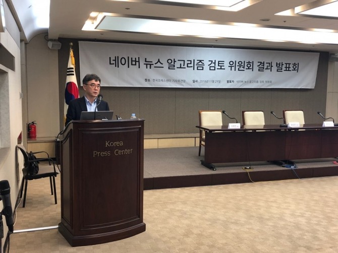 이미지 확대보기네이버 뉴스 알고리즘 검토 위원회는 29일 서울 프레스센터에서 발표회를 갖고 지난 6개월여에 걸쳐 진행한 네이버 뉴스 알고리즘 검토 결과에 대해 이같이 밝혔다.