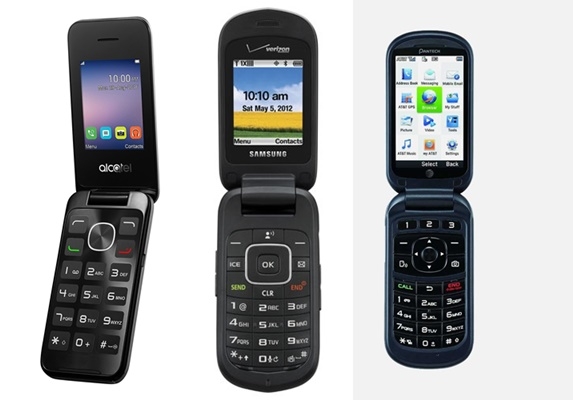 이미지 확대보기폴더블폰 아니다. 폴더폰이 Z세대로부터 각광받기 시작했다. 스마트폰중독을 피하고 싶고 위치추적을 당하지 않는데다 불필요한 광고의 타깃이 되지도 않기 때문이다. 사진 왼쪽부터 알카텔 2051, 삼성전자 구스토2 SCH-U365F, 팬택의 브리즈4 피처폰
