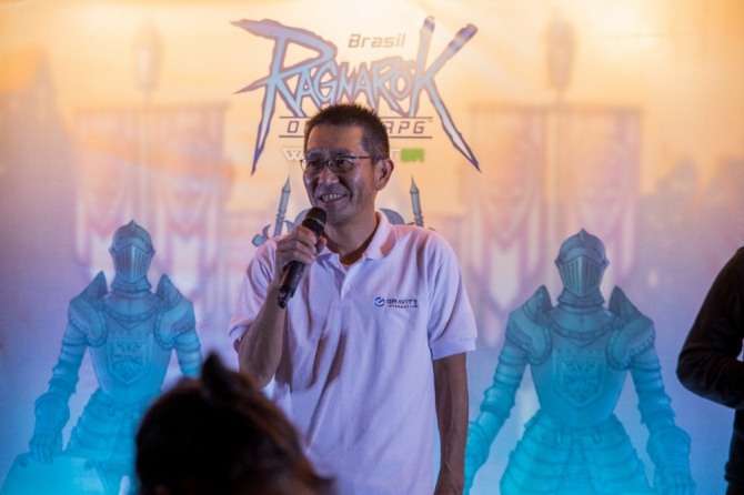 이번 기자간담회에는 파트너사, 인플루언서를 포함하여 약 40명 인원이 참석한 가운데 그라비티 인터렉티브의 CEO 요시노리 기타무라<사진>와 레벨업 (Level Up!)의 CEO 줄리오 비에테즈가 무대에 올라 ‘라그나로크 온라인’의 브라질 직접 서비스를 위한 세부 계획을 공개했다.