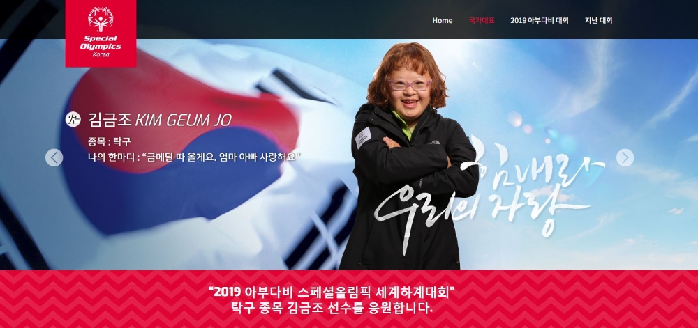 2019 아부다비 스페셜올림픽 한국대표팀 홈페이지는 PC와 모바일 환경 모두에 최적화 되도록 개발됐으며 ‘스페셜올림픽 코리아(www.sokorea.or.kr)’ 사이트를 통해서도 접근할 수 있다. 현재 홈페이지에서는 우리나라 선수들을 주인공으로 한 2019 아부다비 스페셜올림픽 세계하계대회 사전홍보영상과 2015, 2017 지난 세계대회 속 국가대표팀의 활약 영상을 확인할 수 있으며, 모든 영상은 엔씨문화재단에서 직접 촬영·제작했다.
