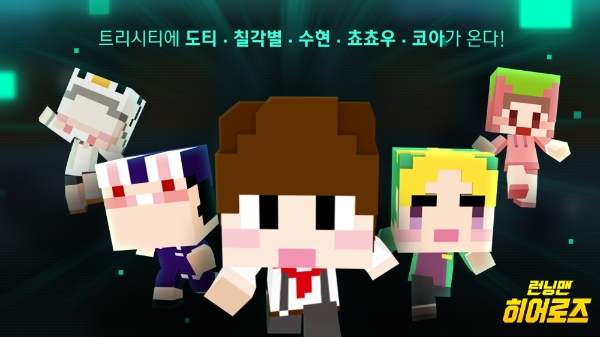 이미지 확대보기이번 업데이트로 유튜브에서 큰 인기를 얻고 있는 '도티', '쵸쵸우', '코아', '칠각별', '수현'을 '런닝맨 히어로즈'에서 만날 수 있다. 해당 캐릭터들은 '도티쓰러스트', '당근댄스' 등 개성 있는 '차지 어택'을 사용하는 것이 특징이다.