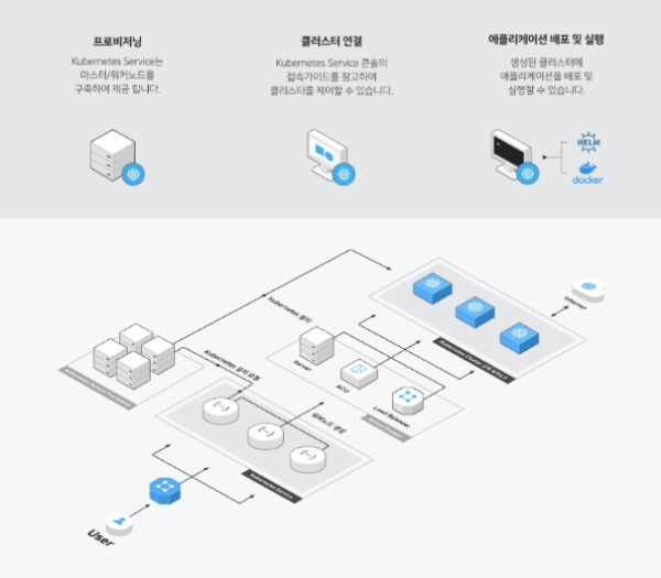 이미지 확대보기네이버 비즈니스 플랫폼은 자사 클라우드 플랫폼에서 빠르고 간편한 컨테이너 오케스트레이션 '쿠버네티스 서비스' 등 신규 상품을 출시했다고 11일 밝혔다. 사진은 쿠버네티스 서비스 구성도 (사진=네이버 비즈니스 플랫폼)