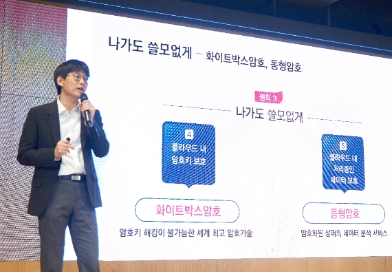 조지훈 팀장은 “암호화된 데이터 분석 결과를 보기 위해서는 암호키가 필요”하며 “암호키는 컴퓨터, 스마트폰, USB 등 고객이 원하는 방식으로 가질 수 있다”고도 설명했다.