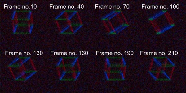 연구팀은 이론에 따라 설계된 박막을 기존 디스플레이의 LCD패널에 부착했고, 실험을 통해 약 3cm×3cm의 화면에서 약 30도의 시야각을 가지는 3차원 홀로그램 영상을 구현하는 데 성공했다.