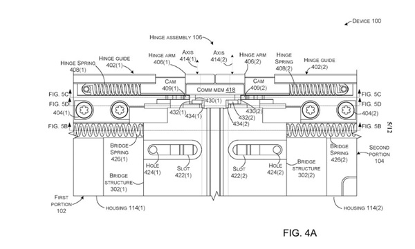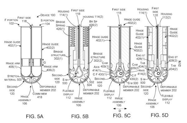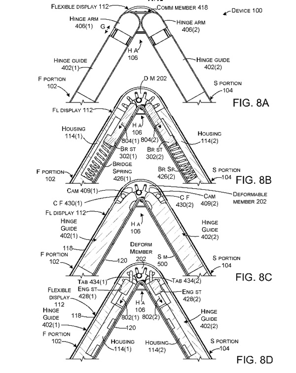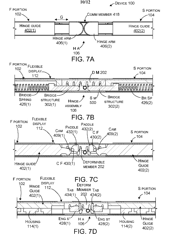 특허출원서와 도면을 보년 MS는 또한 폴더블 디스플레이,힌지의 스트레스를 줄이고 손실을 줄이며, 스크린 뒤에 부품을 배치하는 데도 관심을 보인다. 스크린이 접히는 부분에도 접히지 않은 부분같은 질감을 제공하기 위해서다.