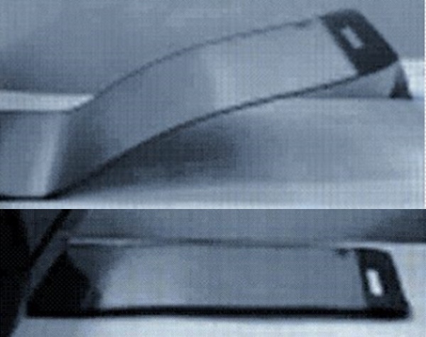 새로이 발견된 LG디스플레이의 폴더블폰은 지금까지와 달리 특허 스케치가 아닌 실제로 작동하는 폴더블폰 단말기 사진을 보여준다. 이 사진은 실험실에서 찍은 것으로서 유연한 단말기 뒷판을 보여준다.