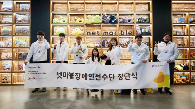 ‘넷마블장애인선수단’은 국가대표를 지낸 강이성(남), 최범서(남), 선진(여), 김보은(여)선수를 비롯해 지난 2018 전국장애인체육대회에서 두각을 나타낸 임효신(여), 이승주(남), 한은지(여) 선수 등 총 7명으로 구성됐다. 향후 전국장애인체전 및 세계선수권 등 국내외 각종 대회에 참여할 예정이다.