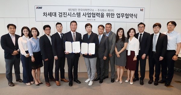 두 회사는 KT의 ICT 역량과 KMI의 국내 최고 수준의 검진 노하우를 융합해 ▲지능형 검진예약 ▲스마트 검진 ▲맞춤형 사후관리 서비스 등 차세대 건강검진 플랫폼 개발에 나서기로 했다. 이를 통해 인공지능(AI) 기반 건강검진 예약·결과를 확인할 수 있고, 효율적인 건강검진 동선 설계를 통해 건강검진 시 대기 인원을 최소화할 수 있게 될 전망이다.