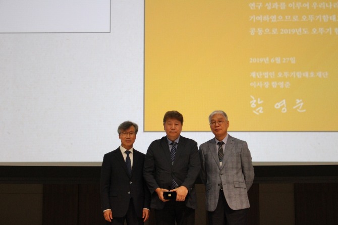 오뚜기 함태호 학술상의 시상은 오뚜기함태호재단 함영준 이사장을 대신해 오뚜기함태호재단 박기문 이사가 상패와 부상 3000만 원을 정 교수에게 전달했다.