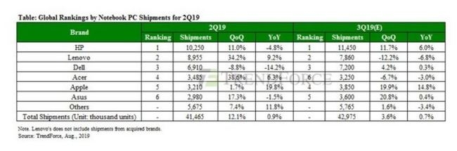 트렌드포스 집계에 따르면 2분기 전 세계 노트북 판매량은 지난해 동기에 비해 0.9% 성장했다.