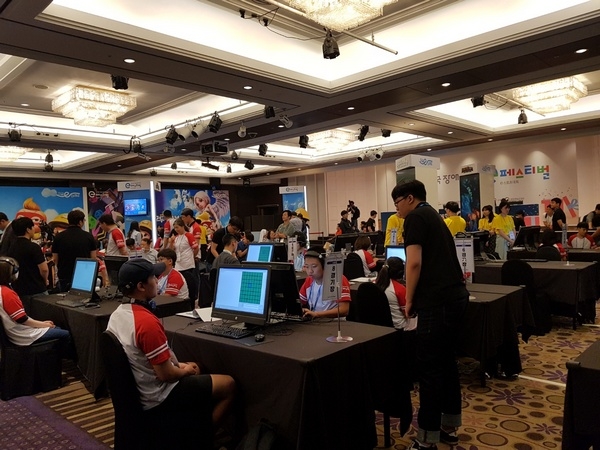 이미지 확대보기개막식 후 시작된 본격 대회를 앞두고 경기장은 대회 참여를 위해 컴퓨터를 세팅하고 연습해보는 학생들과 교사들의 진지한 태도가 눈길을 끌었다. 2층에서 진행된 정보경진대회에서 만난 경남 창원의 경남혜림학교 교사 박현미(43) 씨는 올해 고3으로 마지막 10대를 보내는 신 모 군(19)과 정보경진대회 중 로봇코딩 종목에 참가했다.