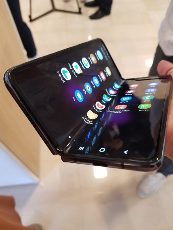 화면은 어떠한 접힘 자국도, 화면 화질 차이도 없었고, 부드럽게 접혔다 펼쳐졌다. 이는 삼성전자가 갤럭시폴드를 위해 개발한 플렉스 인피니티 디스플레이 덕분이다. 기존 스마트폰 화면보다 약 50% 더 얇은 새로운 복합 폴리머 소재로 반복적으로 접었다 펴도 디스플레이 층간 미끄러짐과 분리 현상이 없도록 했다.