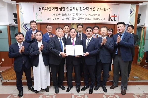 KT(회장 황창규)는 할랄 인증기관 KMF(Korea Muslim Federation, 재단법인 한국이슬람교, 이사장 김동억), 블록체인 기술 개발 전문기업 비스퀘어랩(대표 김민석)과 함께 블록체인 기반의 ‘할랄 인증 트러스트(Trust) 플랫폼' 사업을 본격적으로 추진한다고 7일 밝혔다.