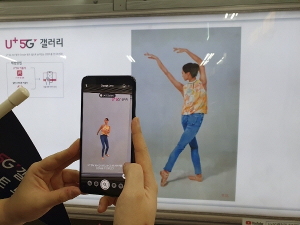 LG유플러스가 공덕 환승 전철역 승강장에 마련한 5G통신 기술 기반으로 소개중인 움직이는 AR기술은 미래를 향해 내닫는 5G 기술처럼 느껴졌다.