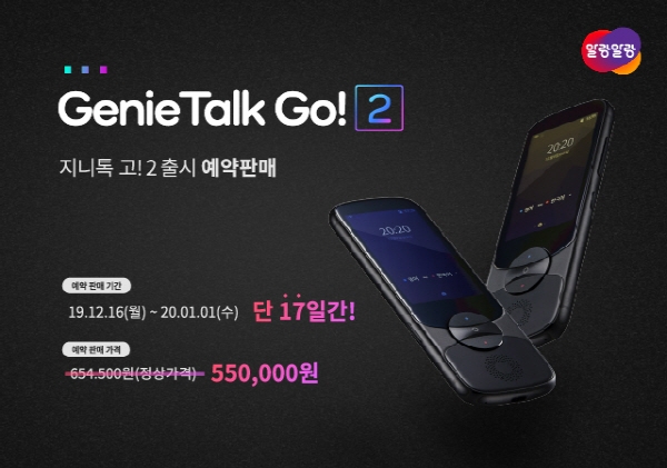 이미지 확대보기한글과컴퓨터 지니톡고! 예약기간 중에는 약 10만원 정도 할인된 가격으로 구매할 수 있으며 제품은 1월 2일부터 순차적으로 배송될 예정이다.