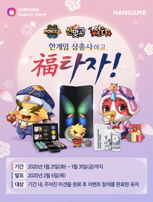 이미지 확대보기NHN(대표 정우진)은 자사가 서비스 중인 모바일 ‘한게임 포커&신맞고&섯다’를 갤럭시 스토어에 전격 출시하며, 이같은 푸짐한 대고객 이벤트를 진행한다고 22일 밝혔다.